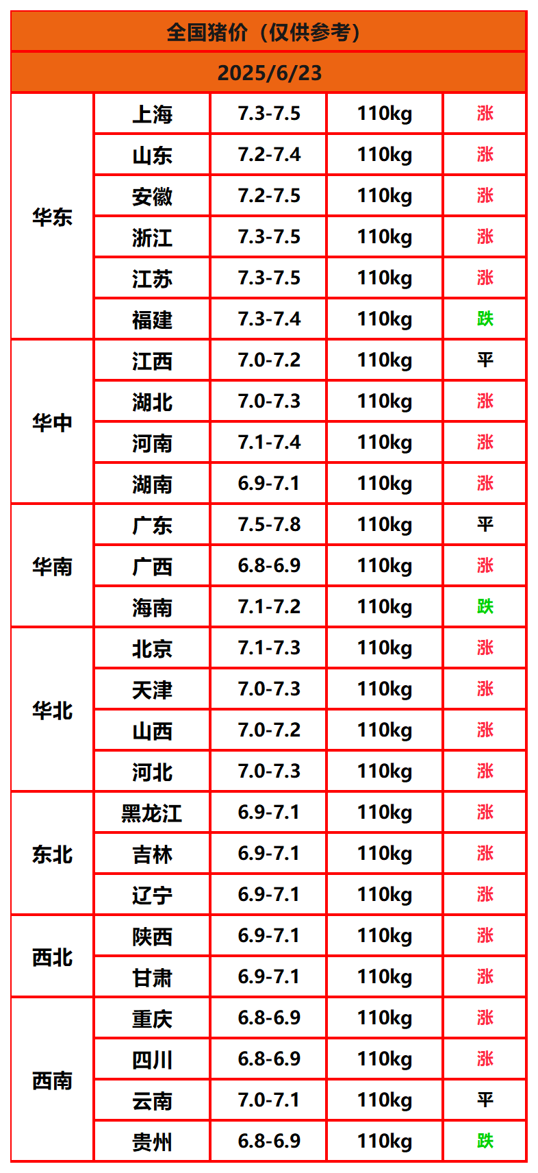 今日猪价 | 2025年6月23日全国猪价行情一览表!